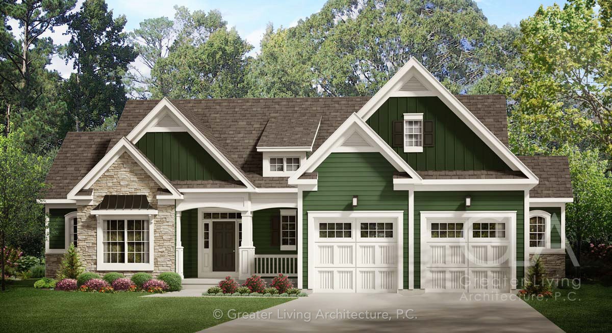 The Greeley is a 2,167 square-foot, one story house plan with 3 bedrooms and 2.5 bathrooms.