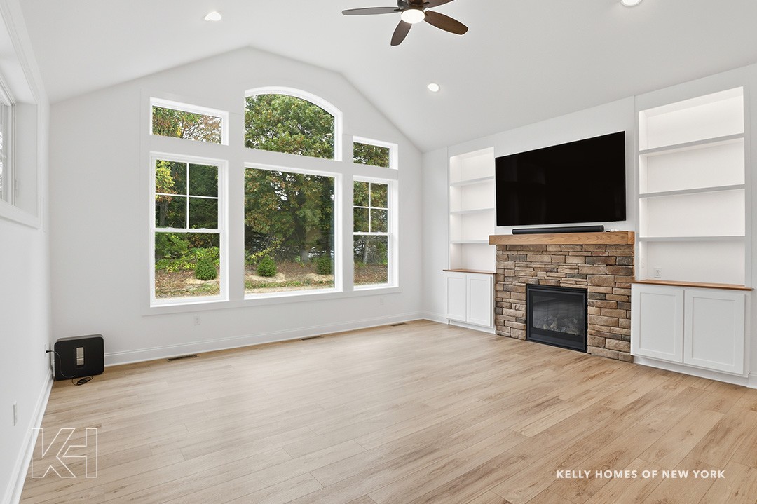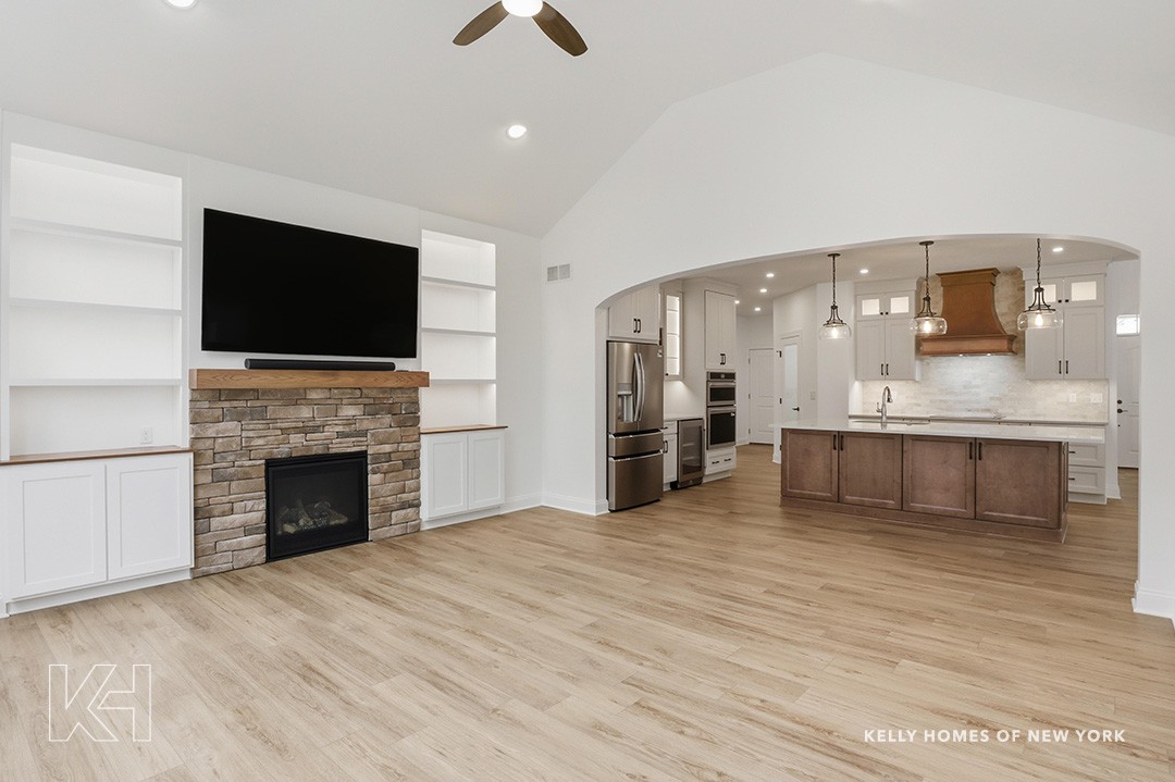 A recently completed build of The Hickory showcases its inviting open layout, bright living spaces, and timeless curb appeal brought beautifully to life.